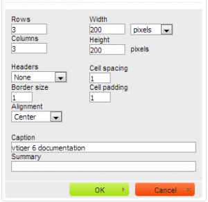 همچنین شما می توانید در قالب خود جدول وارد کرده و اطلاعات را در جدول ها وارد سازید. بدین منظور بر روی آیکن جدول کلیک کرده و تعداد ستون و ردیف و طول و عرض مورد نظر را وارد نمایید.